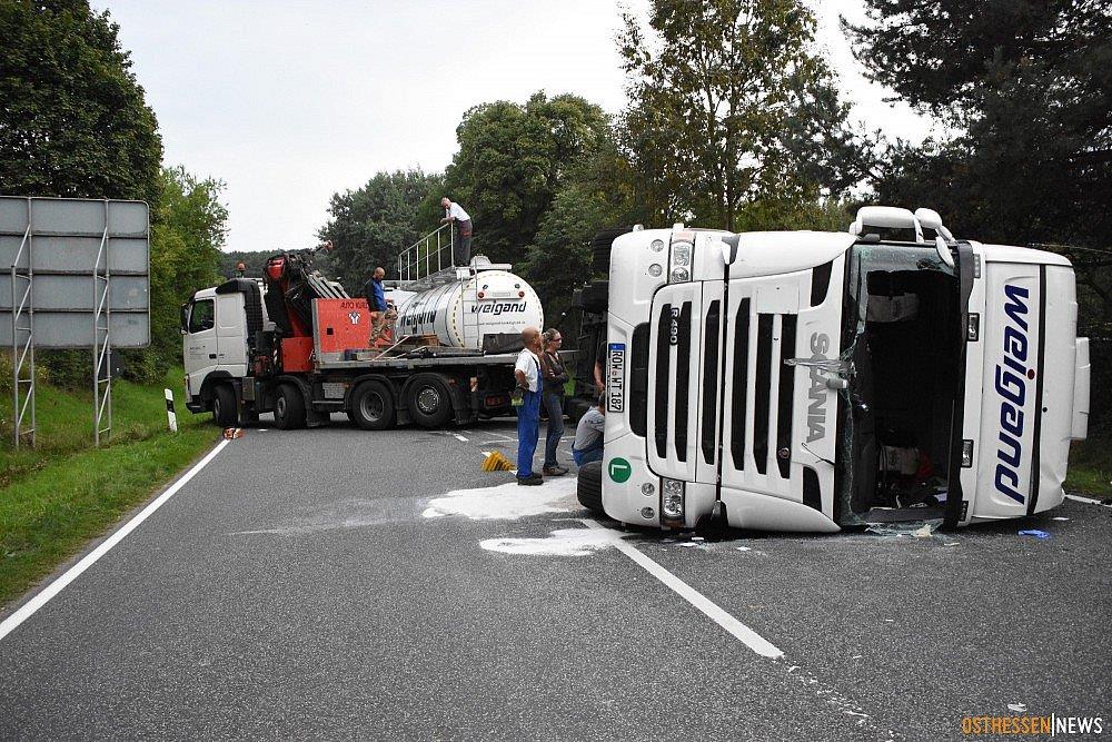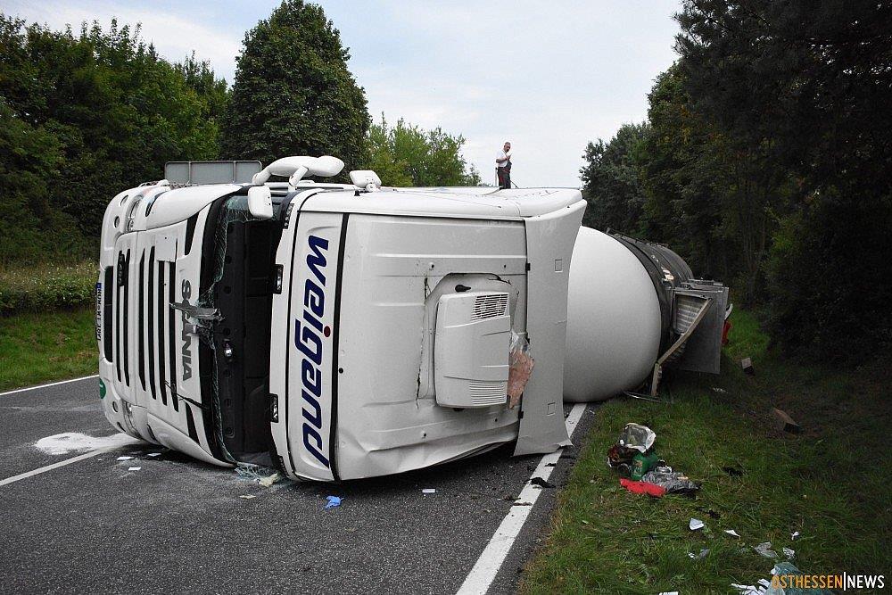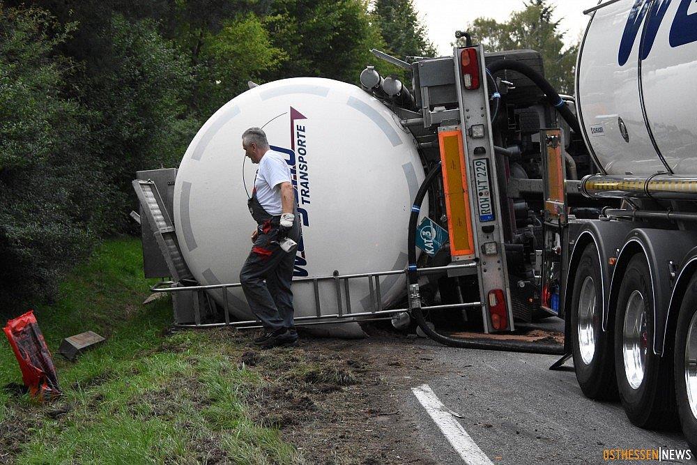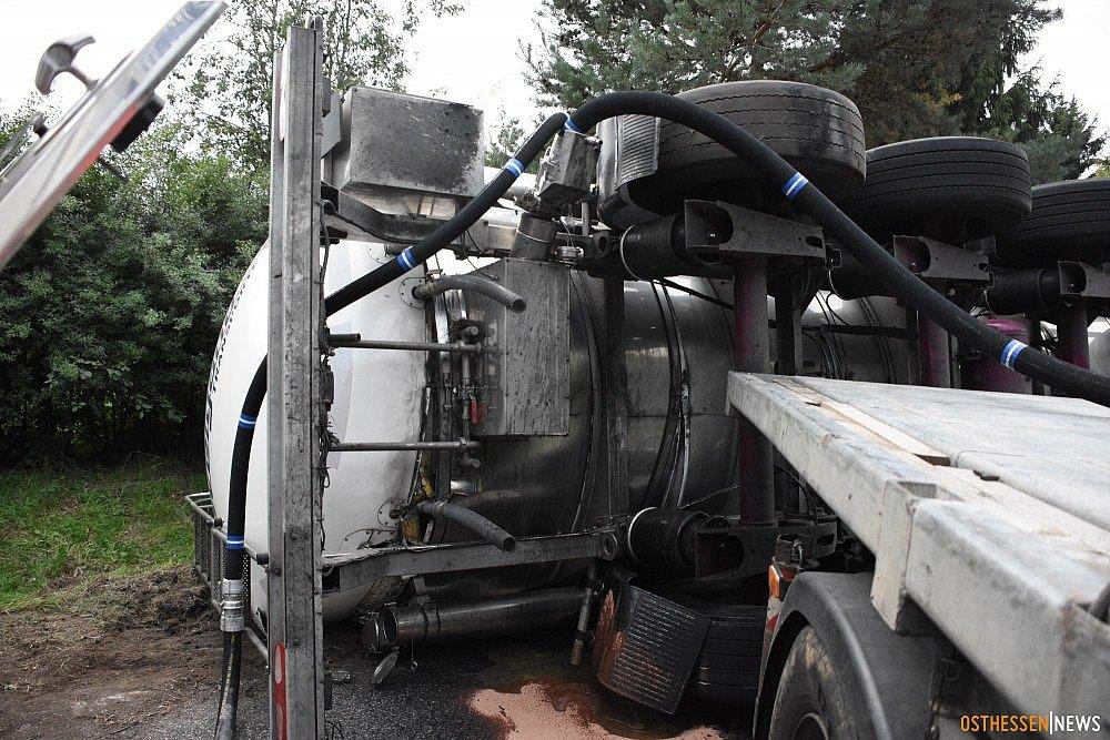 Am Samstag, den 12. September 2015, kam es auf der B254 Richtung Alsfeld zu einem Verkehrsunfall. Einer unserer Fahrer war mit einem mit über 20 Tonnen tierischen Fetten beladenen Tanklastzug unterwegs, verlor kurz vor Alsfeld die Kontrolle, geriet ins Schleudern und stürzte um. Schnell waren Feuerwehr, Polizei und die Weigand Notfall-Helfer vor Ort, um den Fahrer, der beim Unfall im Fahrzeug eingeschlossen wurde, zu befreien und die Ladung des Tanklastzugs zu sichern.